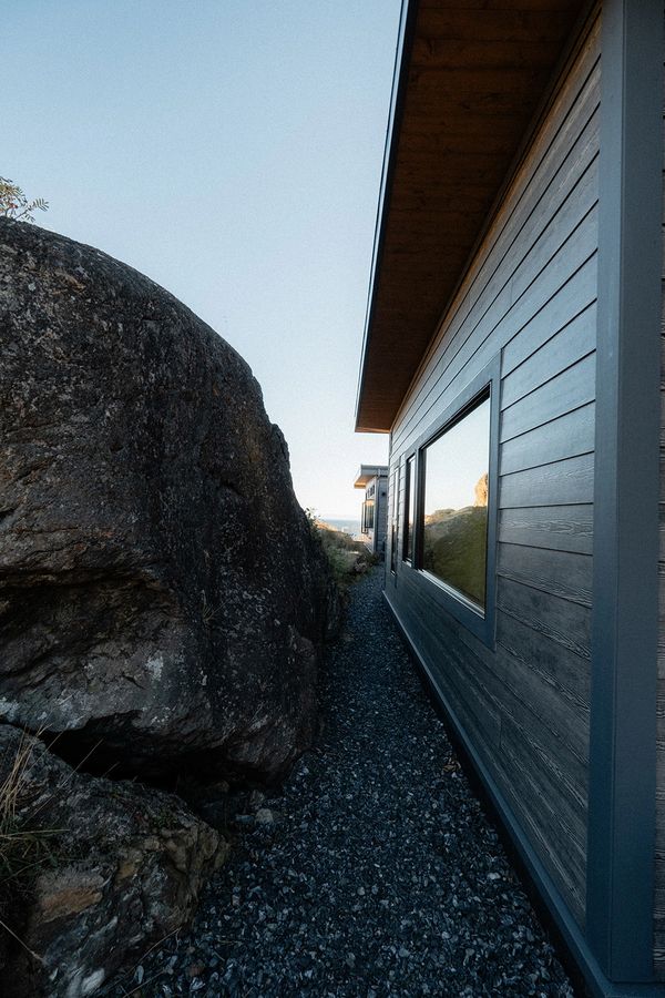 Completed in 2023, our Eagle Point Residence on San Juan Island began with the goal of integrating the main home into a very difficult building site on a steep hill with lots of bedrock. Designed in three parts, the center acts as a bridge across a giant slab of exposed bedrock. The original structure, a guest cabin with a living roof and hot tub, now sit beside the main home. Features both interior and exterior windows for capturing the incredible natural light. Corrugated metal panel siding and fiber cement panels with a proprietary finish were selected for extreme weather exposure durability and low maintenance.